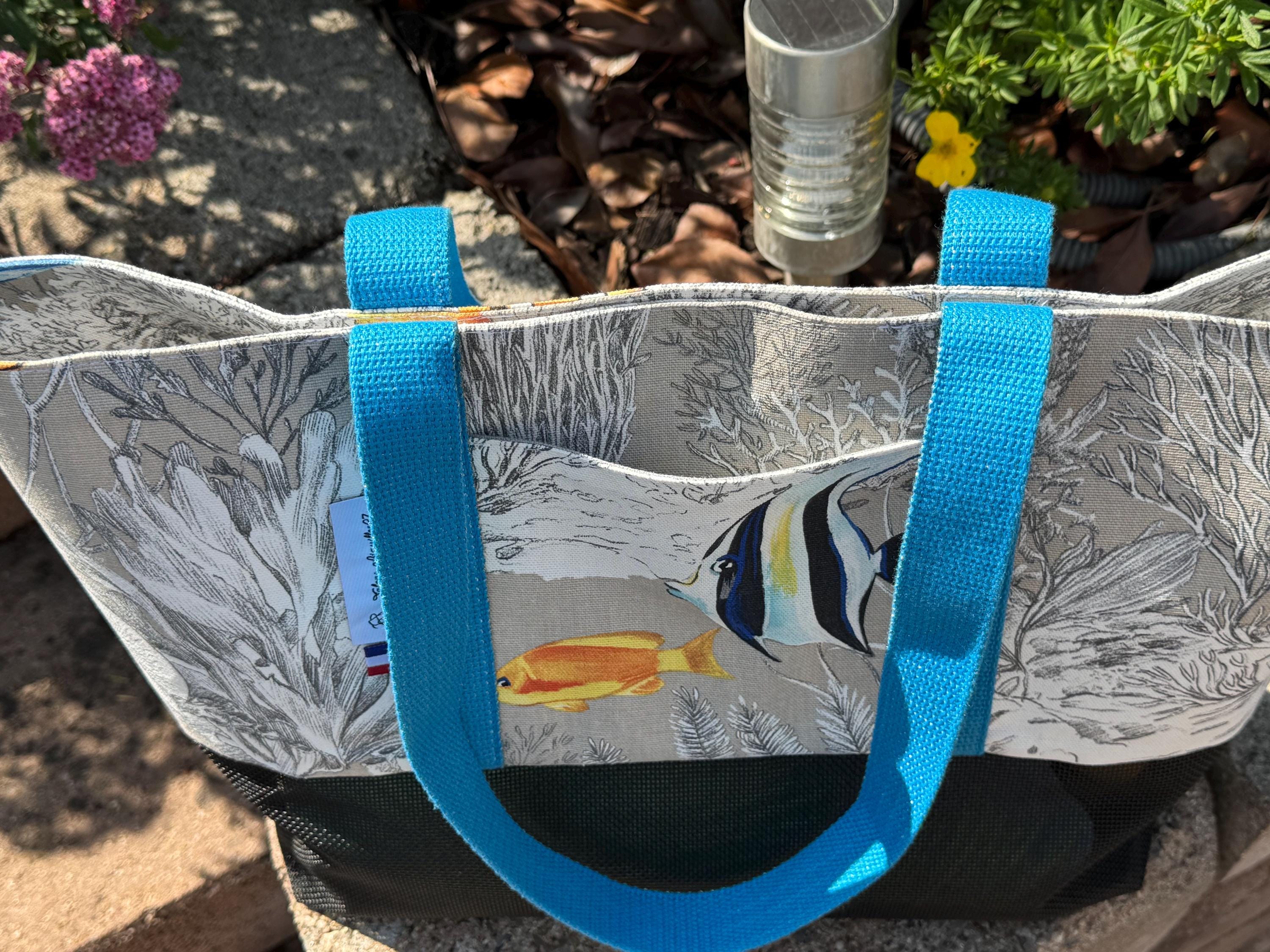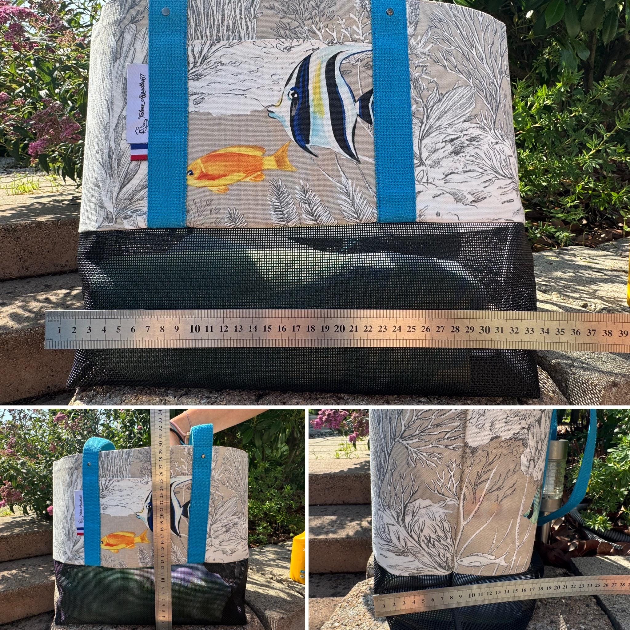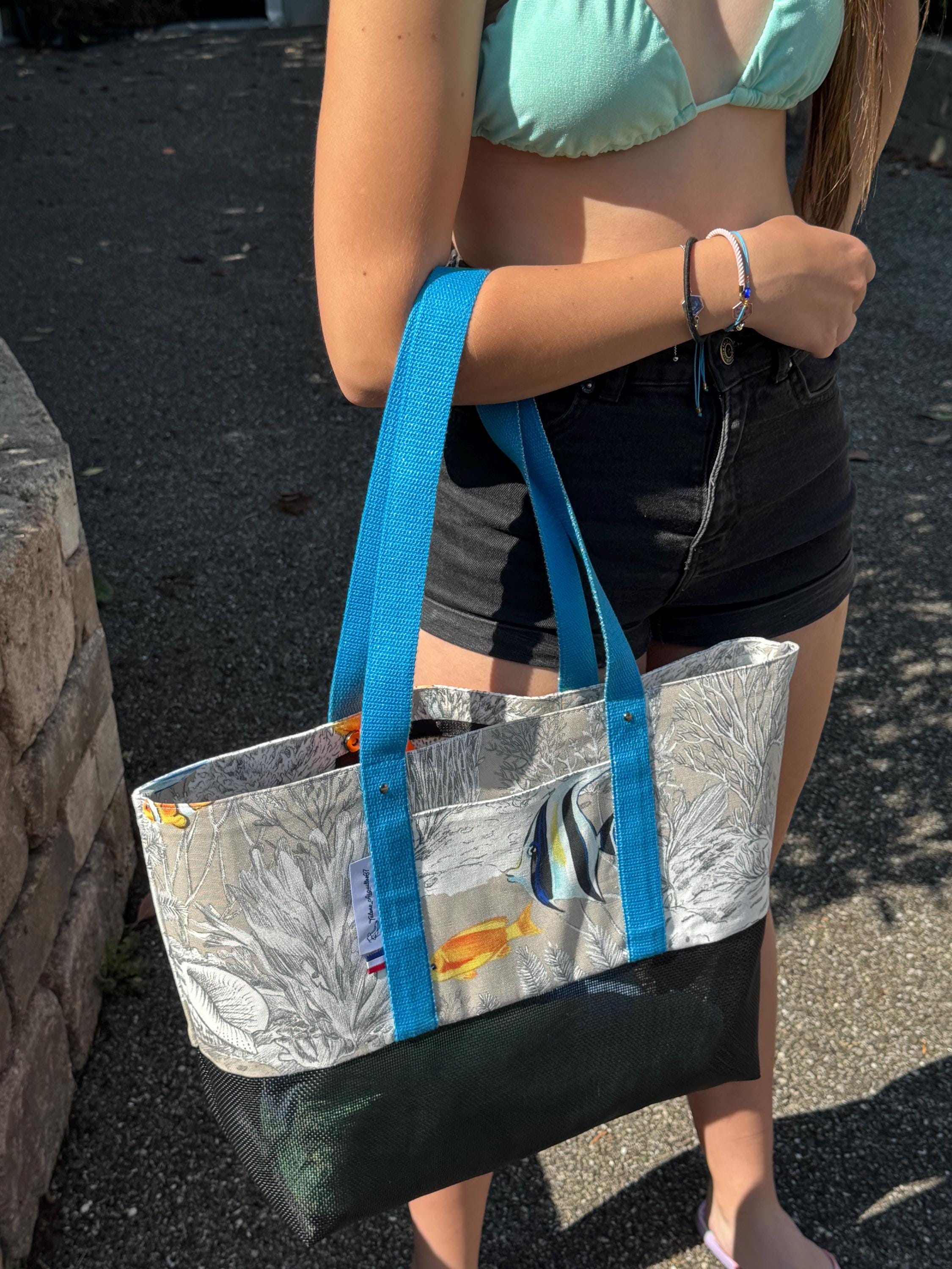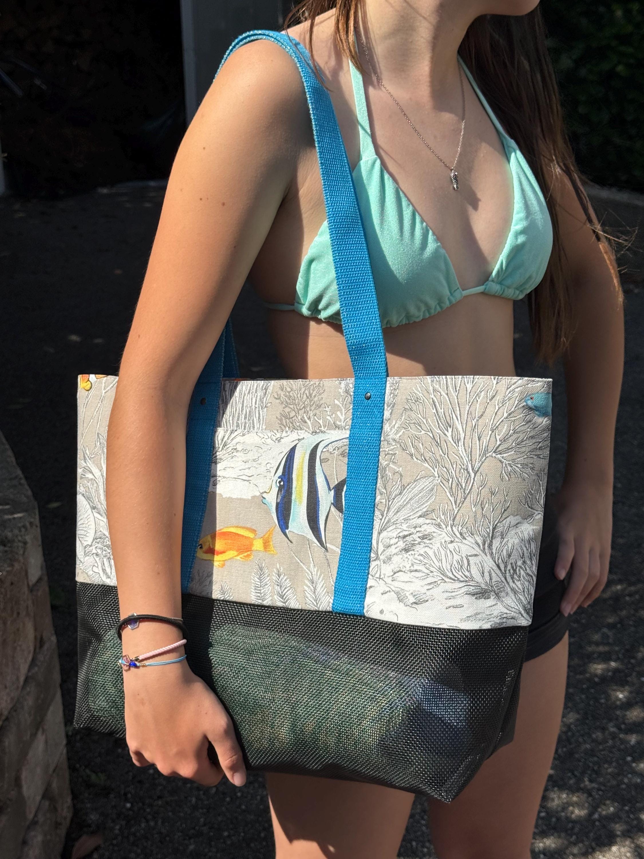 Beach bag or summer tote, to carry just the essentials: towel, book, sunscreen, etc. With its 2 pockets you can store your phone or other items. It closes with a magnetic button which can be very practical when you're out and about.