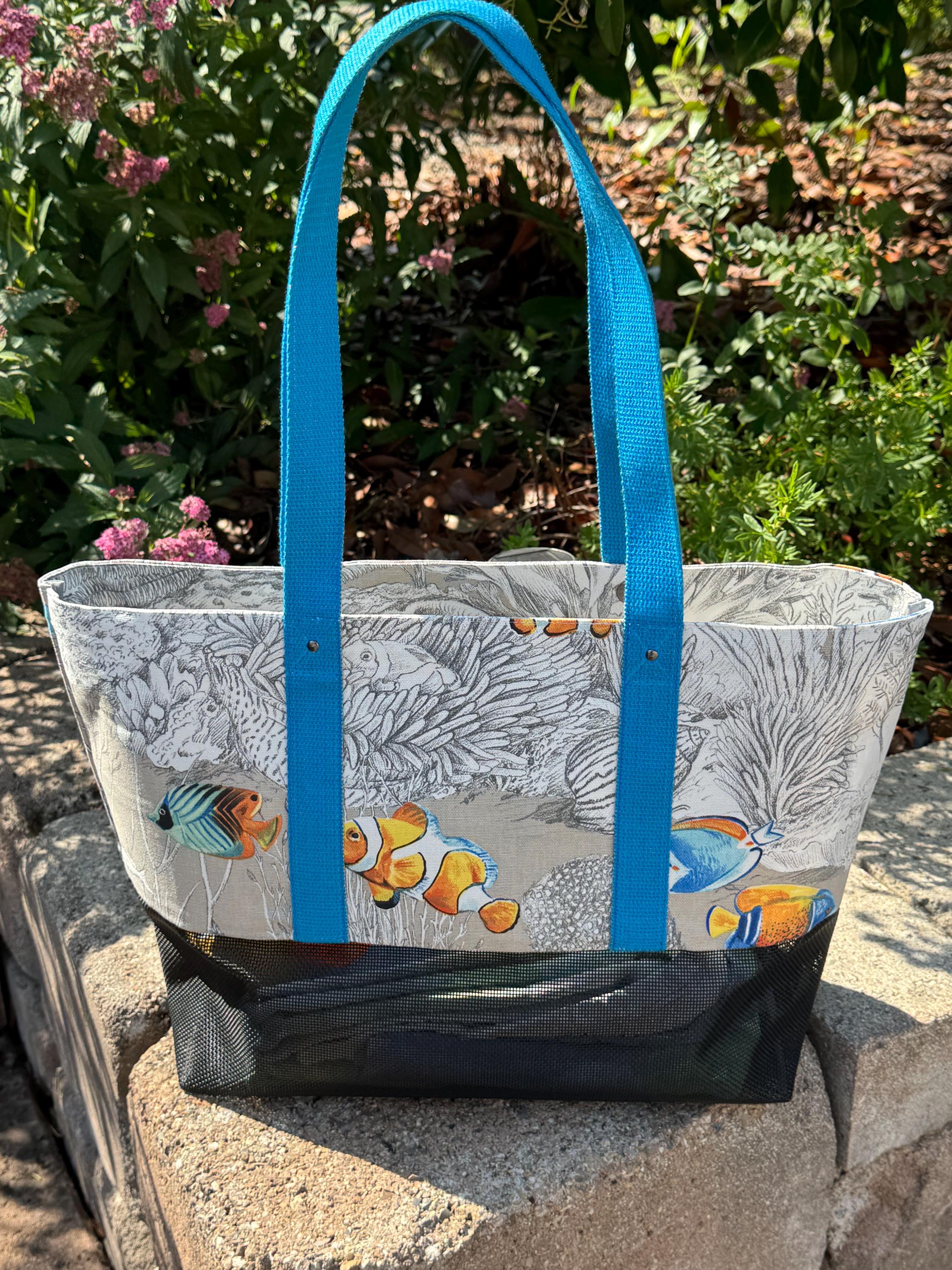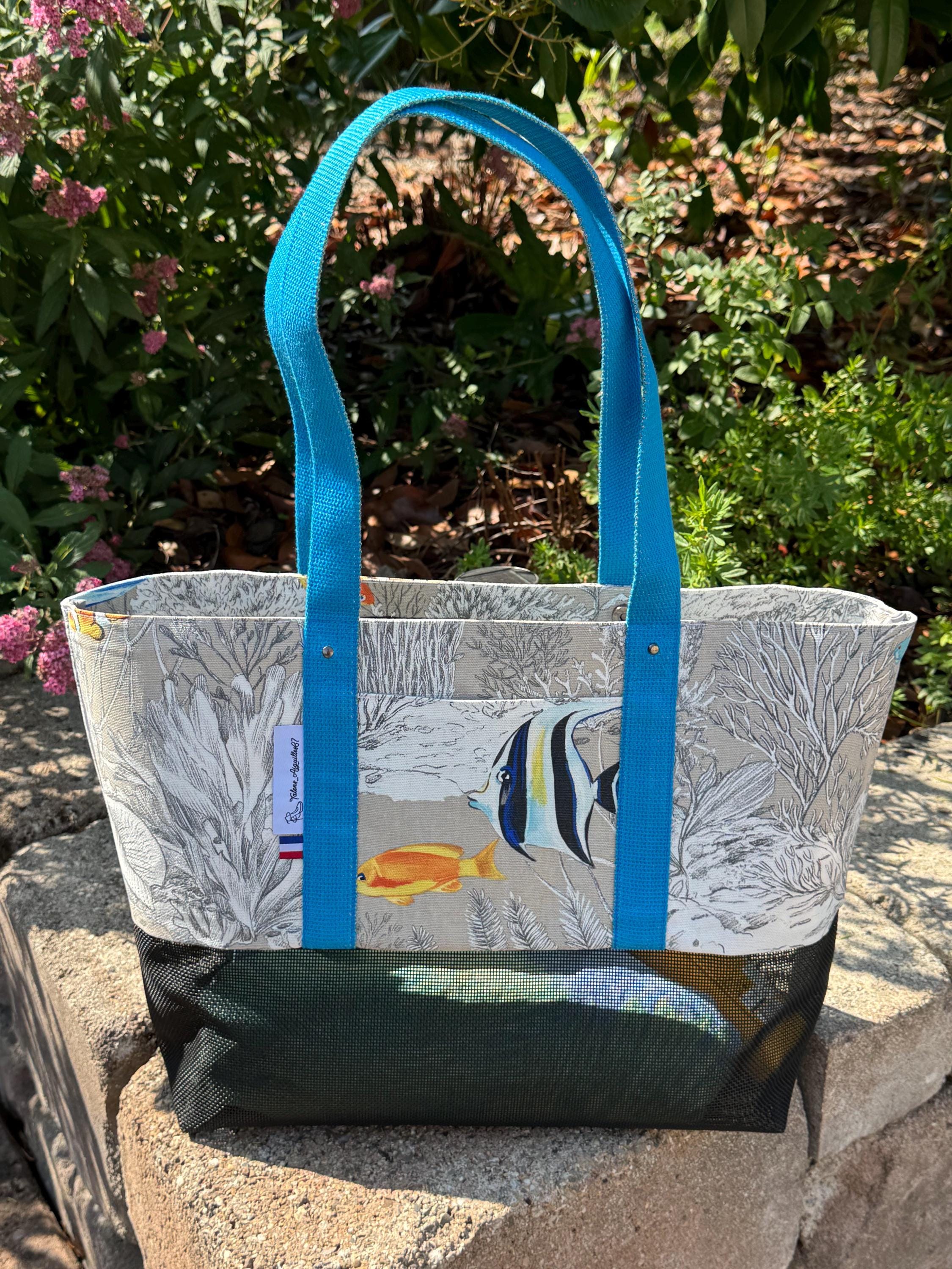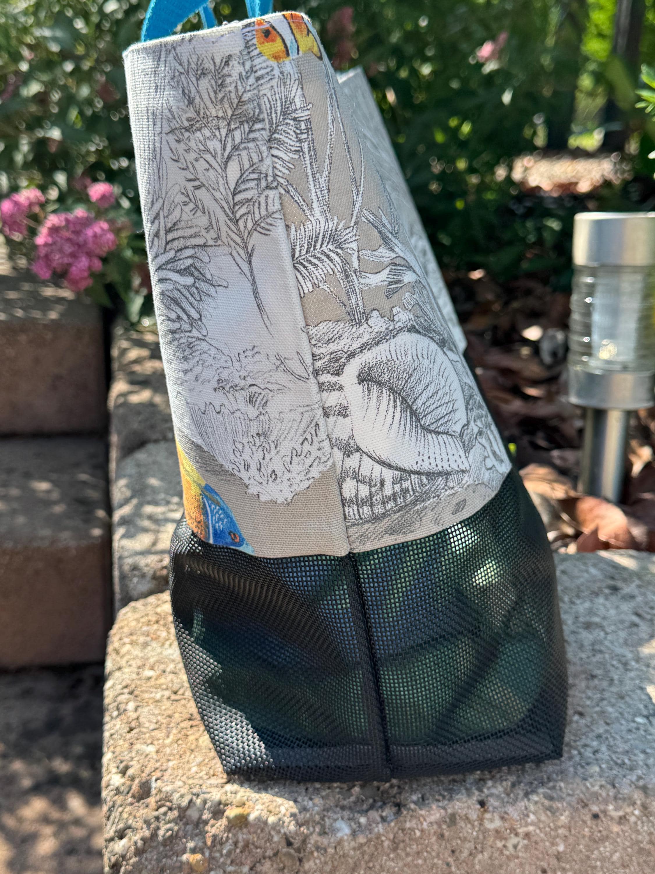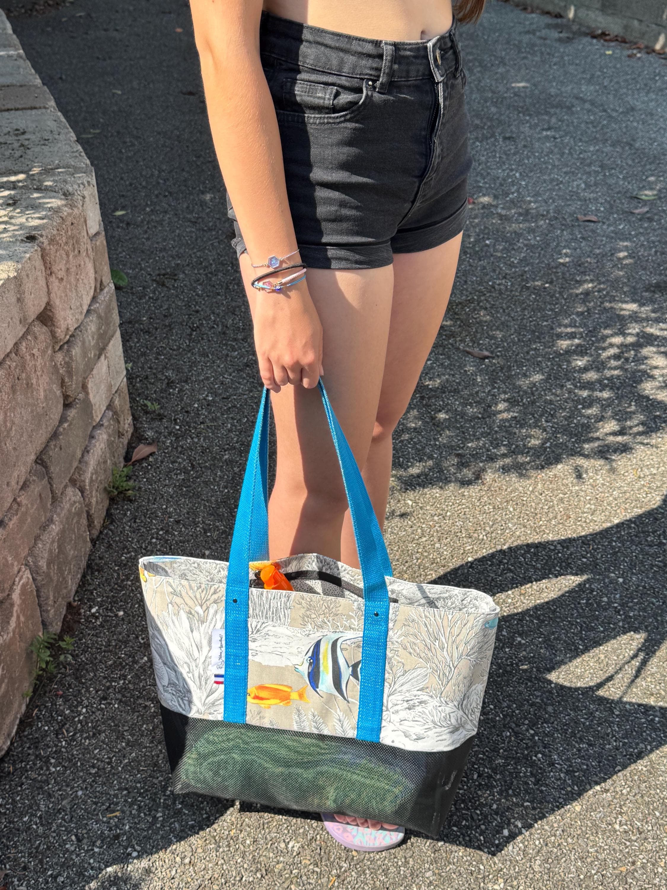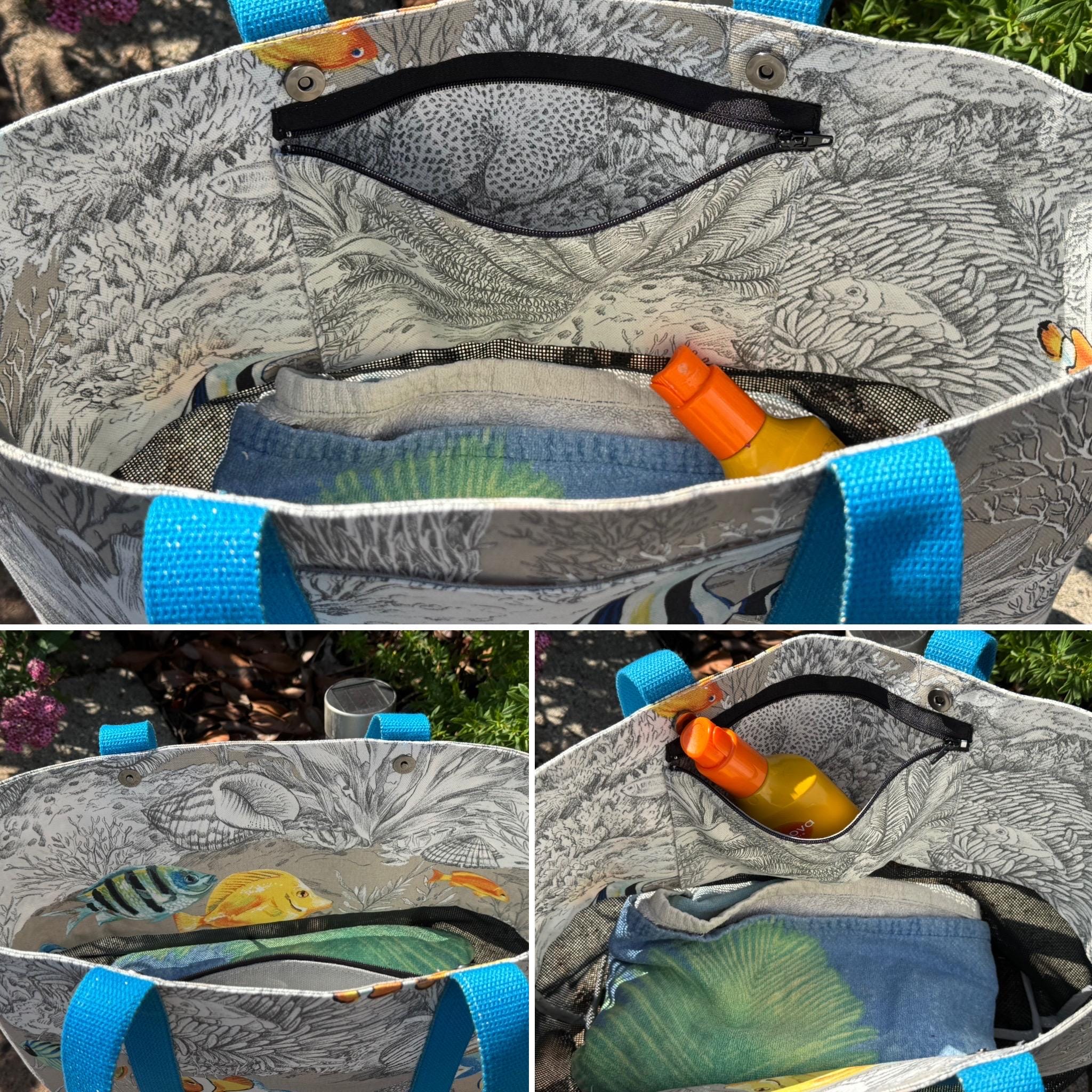 Beach bag or summer tote, to carry just the essentials: towel, book, sunscreen, etc. With its 2 pockets you can store your phone or other items. It closes with a magnetic button which can be very practical when you're out and about.